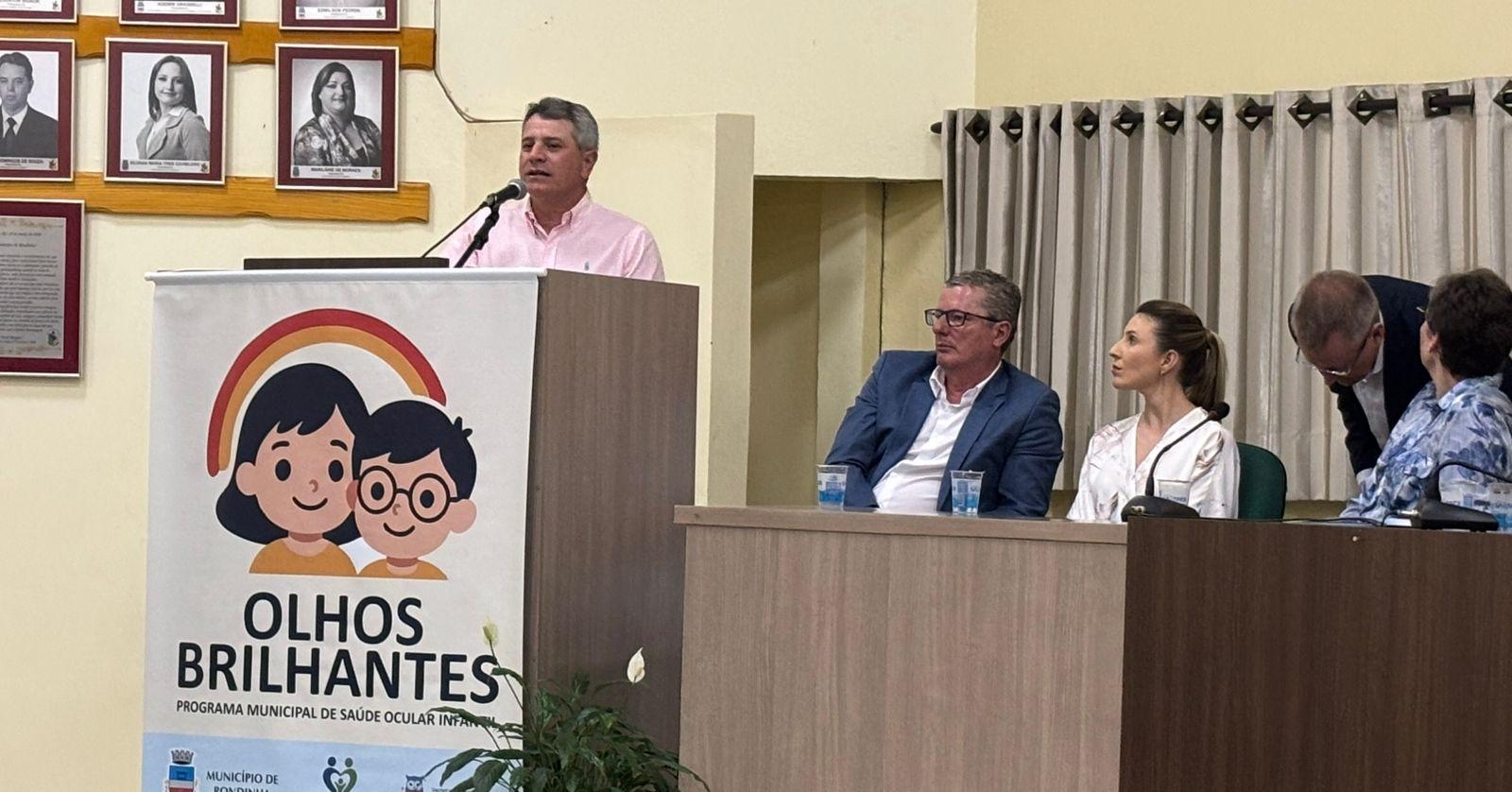 O presidente da Câmara de Vereadores de Rondinha, Eduardo Zorzi, participou na noite do dia 22 de outubro do ato de lançamento do Programa Municipal de Saúde Ocular Infantil – “Olhos Brilhantes”, realizado na sede do Legislativo Municipal.